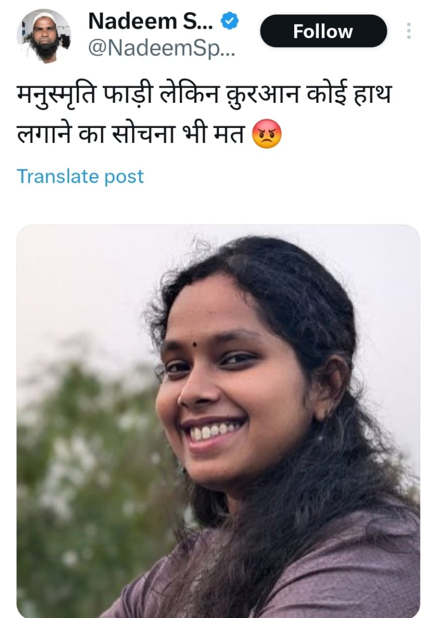 "मनुस्मृति फाड़ी कुरान को हाथ लगाने की मत सोचना" नदीम शेख की RJD प्रवक्ता प्रियंका भारती को चुनौती